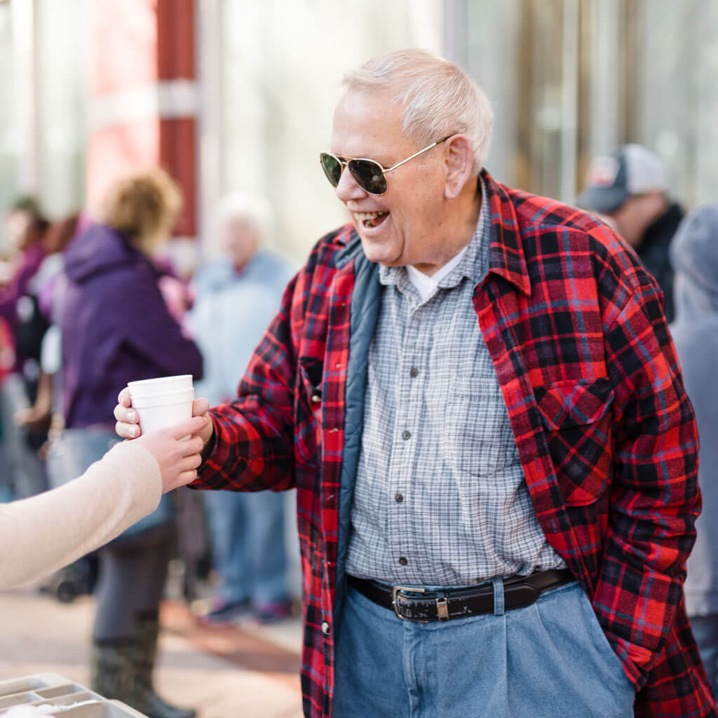 The line outside the Cookie Walk seems to move faster with a cup of hot coffee and a good sense of humor. photograph by Baxter Miller
