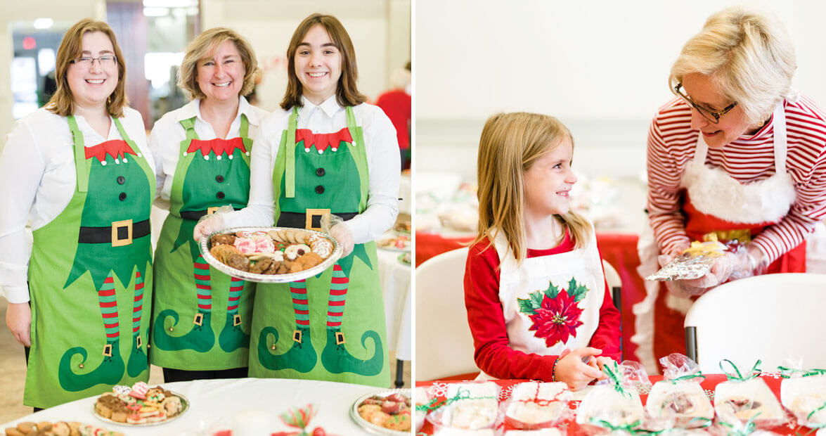 The volunteers gather for a prayer, then glance at the clock: a few minutes ’til 10. They don their gay apparel of plastic gloves, remove protective wrapping from the platters, and light centerpiece candles. Places, everyone, and everyone knows their place: After all, this is the 19th year of the Christ Church Cookie Walk.