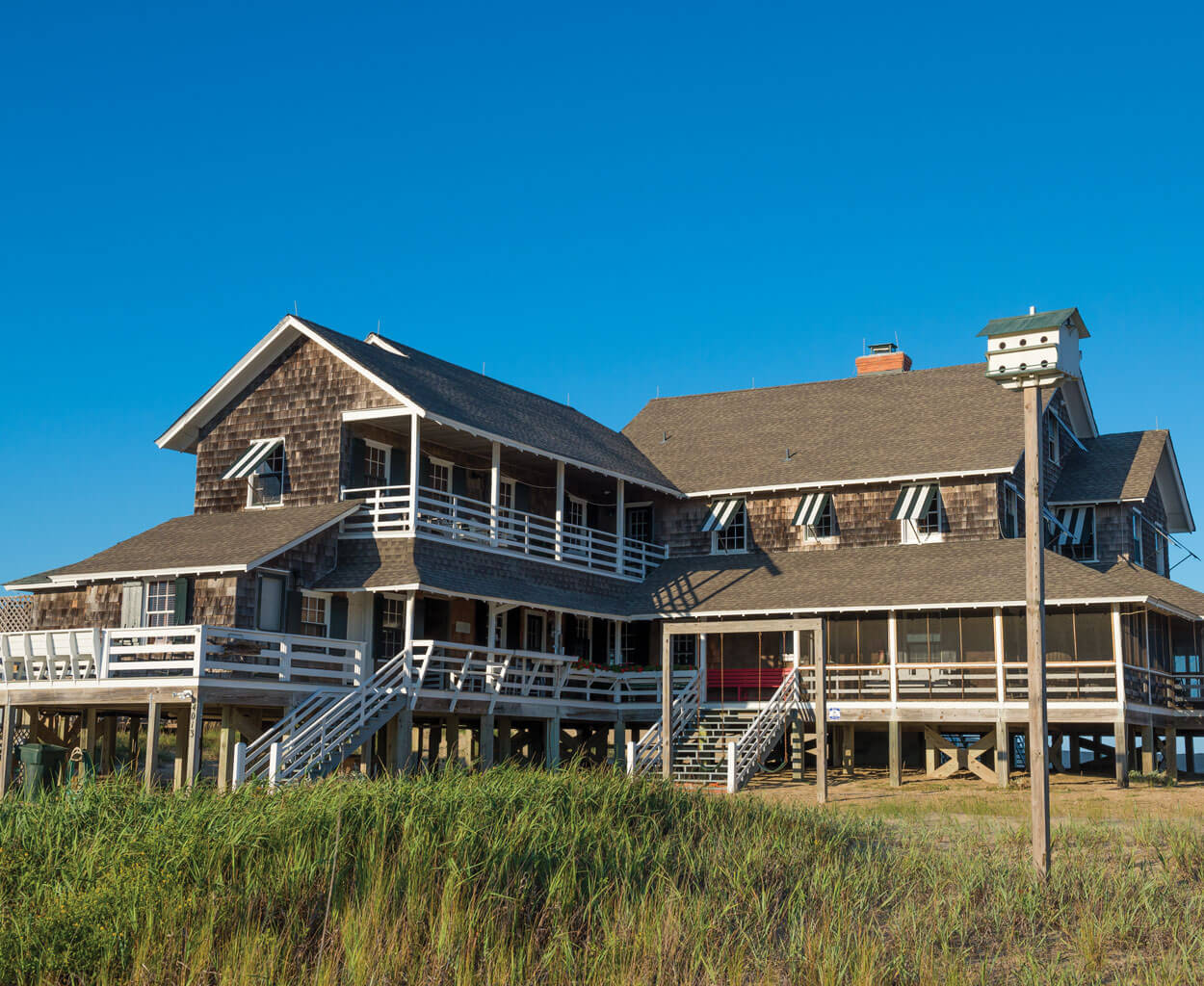 South Carolina’s Pawleys Island may have bumper stickers proclaiming “Arrogantly Shabby,” but these grande dames of Nags Head have their own eloquent moniker: the Unpainted Aristocracy, a term coined in the 1920s by Jonathan Daniels, eventual editor of Raleigh’s News & Observer, to describe their weathered, yet elegant, appearance.