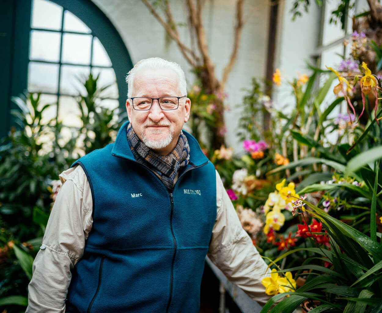 Fewer orchids than orchid hunters survived the journey home, but those that did found new habitats in conservatories, the grand glass jewel boxes built on estates to display exotic plants from around the world. Horticulture standards being high in the 1800s, a gardener tending one of these man-made Edens might apprentice for two years before earning the privilege of watering the orchids. But for one orchid grower in 2019, those standards aren’t quite high enough: “I don’t let anyone else water my orchids,” says Marc Burchette, who oversees all things Orchidaceae at Biltmore’s Victorian-era conservatory. After 25 years of collecting orchids and five years of tending and expanding Biltmore’s collection, Burchette knows all too well that “some orchids are persnickety. Well, they’re all a little persnickety,” he admits.