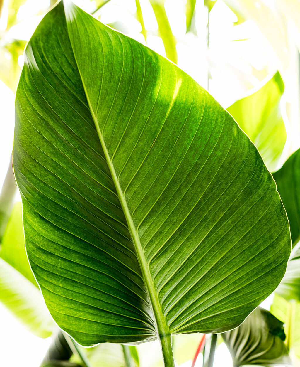 Most of the plants are native to tropical habitats around the globe. Displayed together, they form a seamless ecosystem where even this massive philodendron frond can fit right in. photograph by Charles Harris