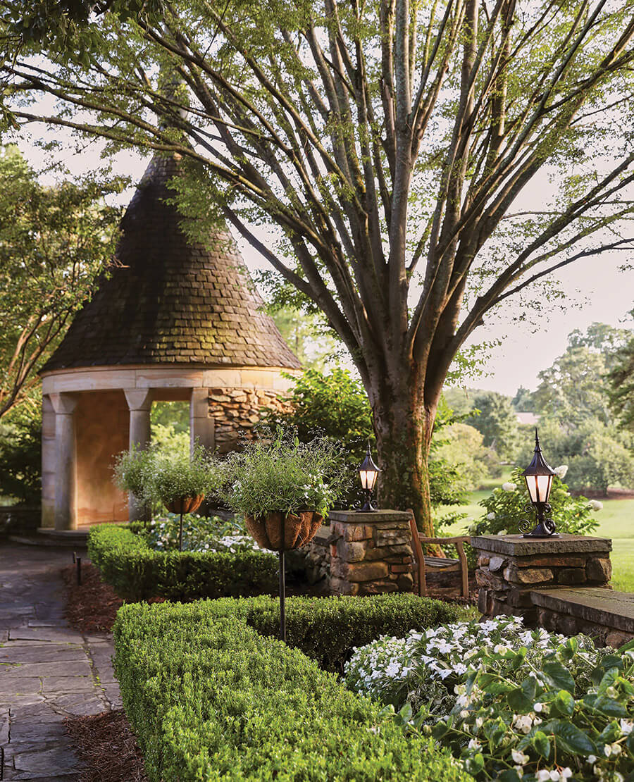Wander the grounds at Graylyn, where gracious arbors and benches provide shady respites to pause and take in the beauty. photograph by Stacey Van Berkel