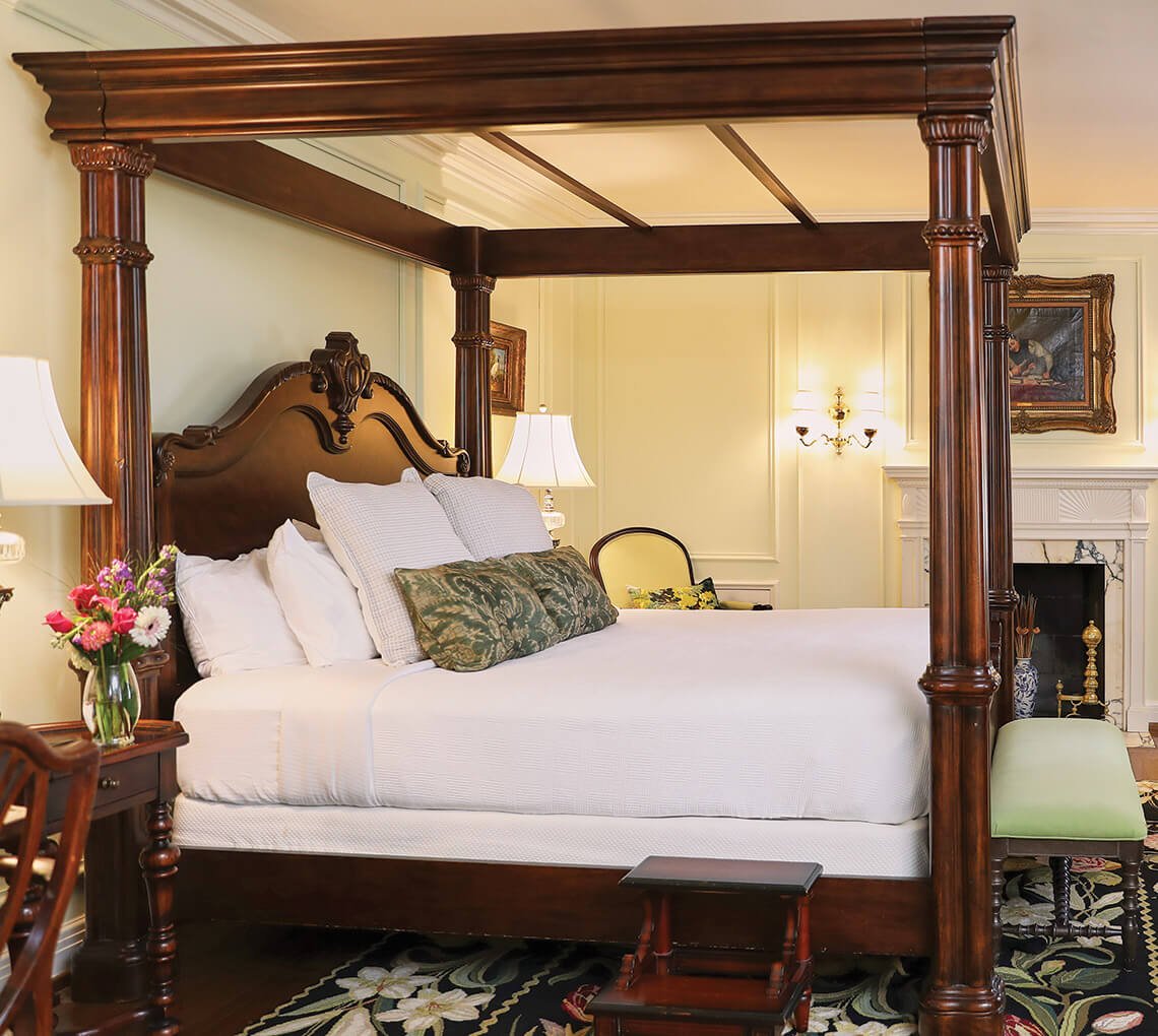 Book a stay in the sumptuous guest rooms within Graylyn’s manor house. photograph by Stacey Van Berkel