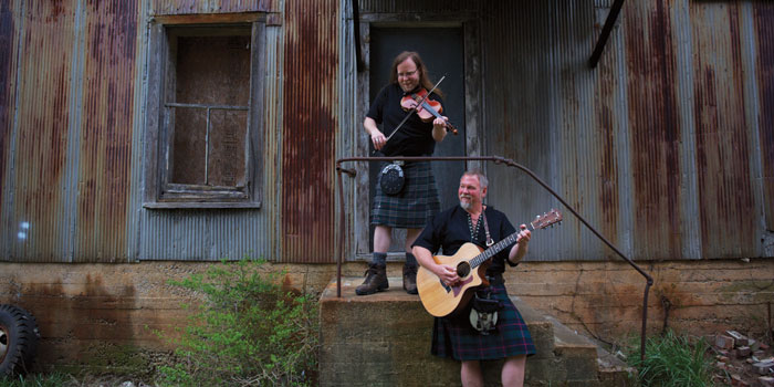 “Everybody wants to know what you’re wearing under it,” says Rogers, half of the Celtic band known as Thistledown Tinkers. They always give the same reply, “Boots.”