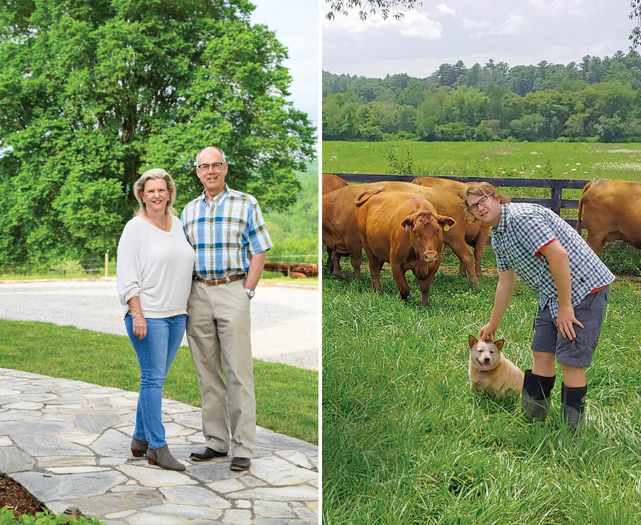 During construction of the barn, Jake worked the farm, getting up early each morning to tend to the cattle and gather eggs from the chicken coop. He’d jump on his green John Deere Gator, count the cows and calves, transfer the herd to different areas of pasture to graze, fill up the mineral feeders, put insect-control dust on the cows’ backs, and clean the fence lines to keep them looking neat. “That herd of cows would follow Jake to downtown Brevard if he was driving that green Gator,” Clay says. In the original herd, there was a young bull that took a liking to Jake. “I would return from being out of town,” Clay remembers, “and Jake would tell me, ‘You should come out and pet Nick. He follows me around and likes to be petted.’ I asked him, ‘Who is Nick?’ and he said, ‘He’s a bull calf out there who is my pet.’” Jake, who loves numbers, named the bull Nick because it had a No. 5 tag in its ear, and five pennies equal a nickel; thus, Nick.
