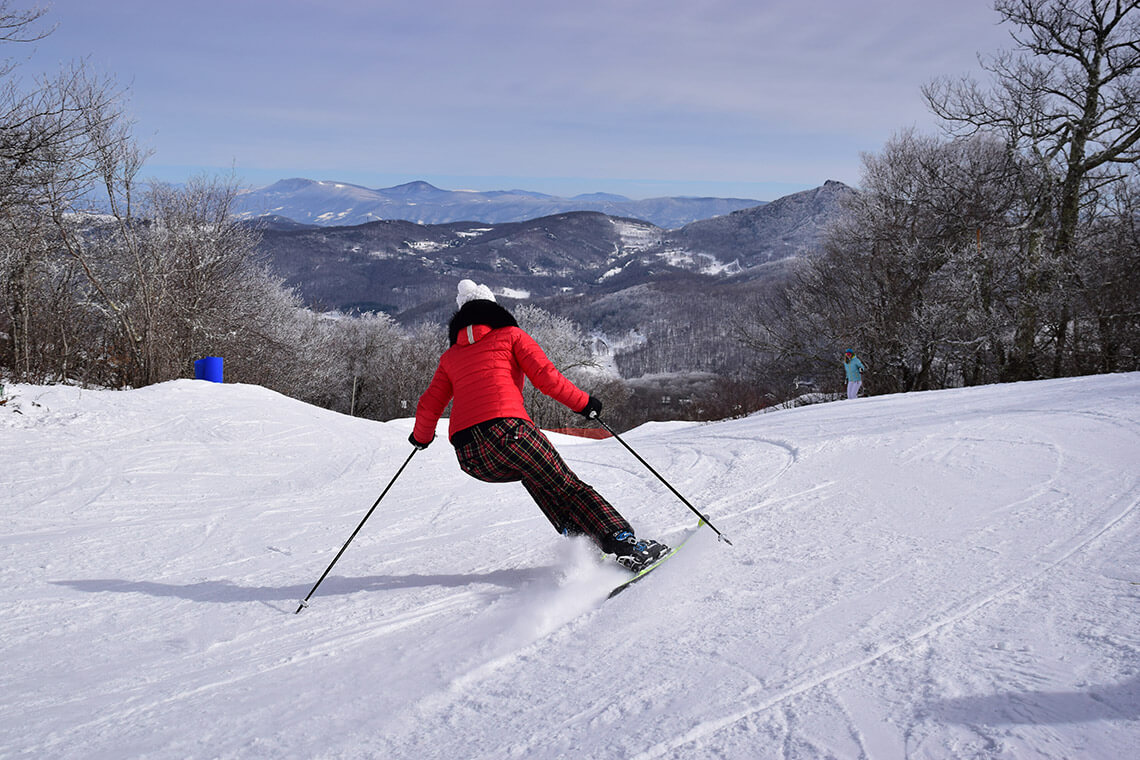 Surrounded by the Blue Ridge mountains, visitors are treated to postcard-worthy views as they sashay down the slopes. photograph by bushphoto.com, Courtesy of Village of Sugar Mountain