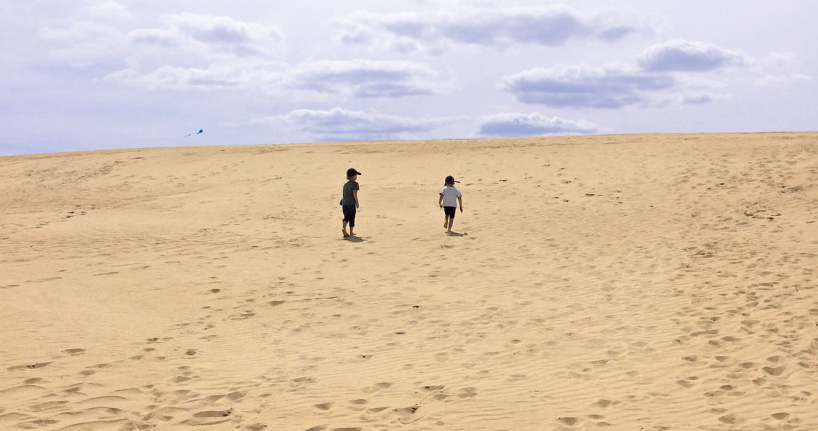 Down that walkway then, and to a kind of viewing platform, which was littered with shoes. We took ours off, too. The scale of the place didn’t dawn on us right away. We set out into warm, soft sand. But then we crested the first hill, and The Wee looked around, mouth hanging open. Sand everywhere. He named a desert planet from a globally famous space-opera franchise, the toys from which fill our house. For sure, his older brother said. Definitely. We were absolutely on that planet.