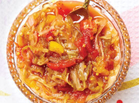 While harvesting your summer garden, save extra Roma tomatoes for this sweet and tangy chowchow relish.