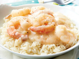 Spoon North Carolina shrimp and gravy over rice or cornbread for a comforting Southern seafood dish.