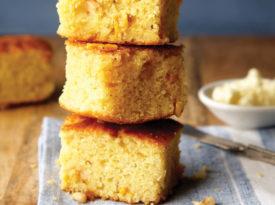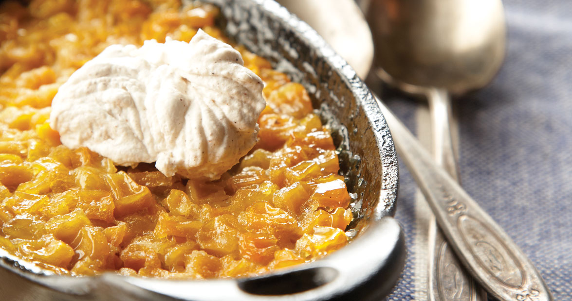 Corn pudding: not just a side dish. Chef Wendy likes to serve her grandma’s version as a dessert, topped with a dollop of cinnamon whipped cream.
