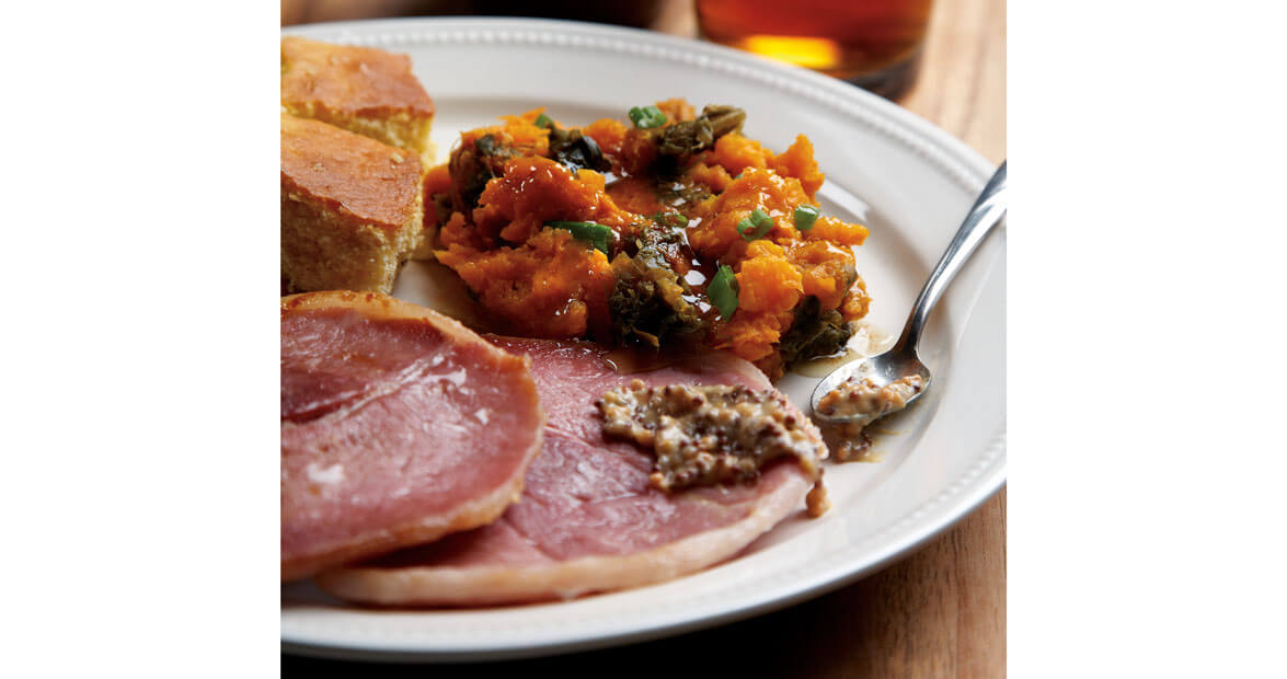 Colcannon is a traditional Irish dish of white potatoes and greens. Serve this Southern version, featuring North Carolina sweet potatoes and collards, with ham for St. Patrick’s Day, or year-round.