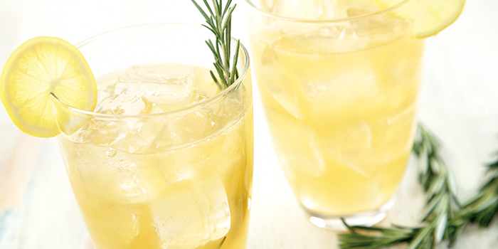 A sprig of rosemary serves as an elegant finishing touch to this refreshing drink.
