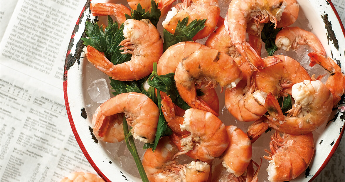 In 25 Secrets Revealed: A Culinary Tour, Kevin McCabe adds extra flavor to traditional boiled shrimp with celery seed and black pepper.