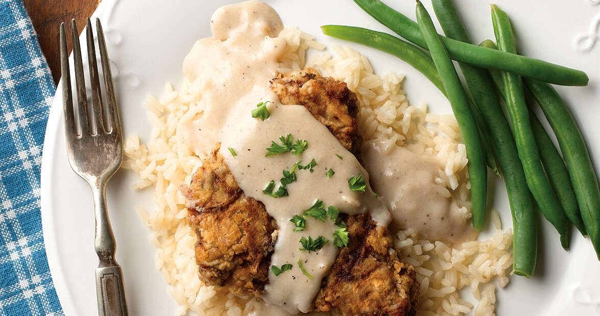 Along with this recipe in Country Recipes and other Interesting Stuff, Bob Holt includes an anecdote about his mother's method for tenderizing the steak with the edge of a plate when she made her country style steak and gravy.