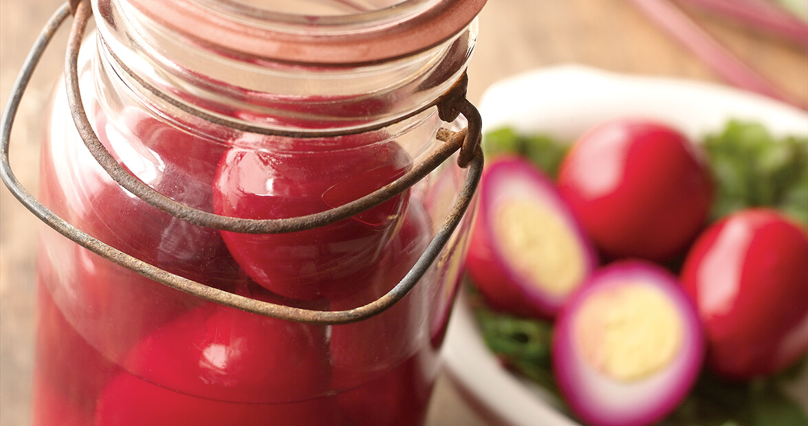 This pickled egg recipe from Meals & Memories will add vibrant color to your table.