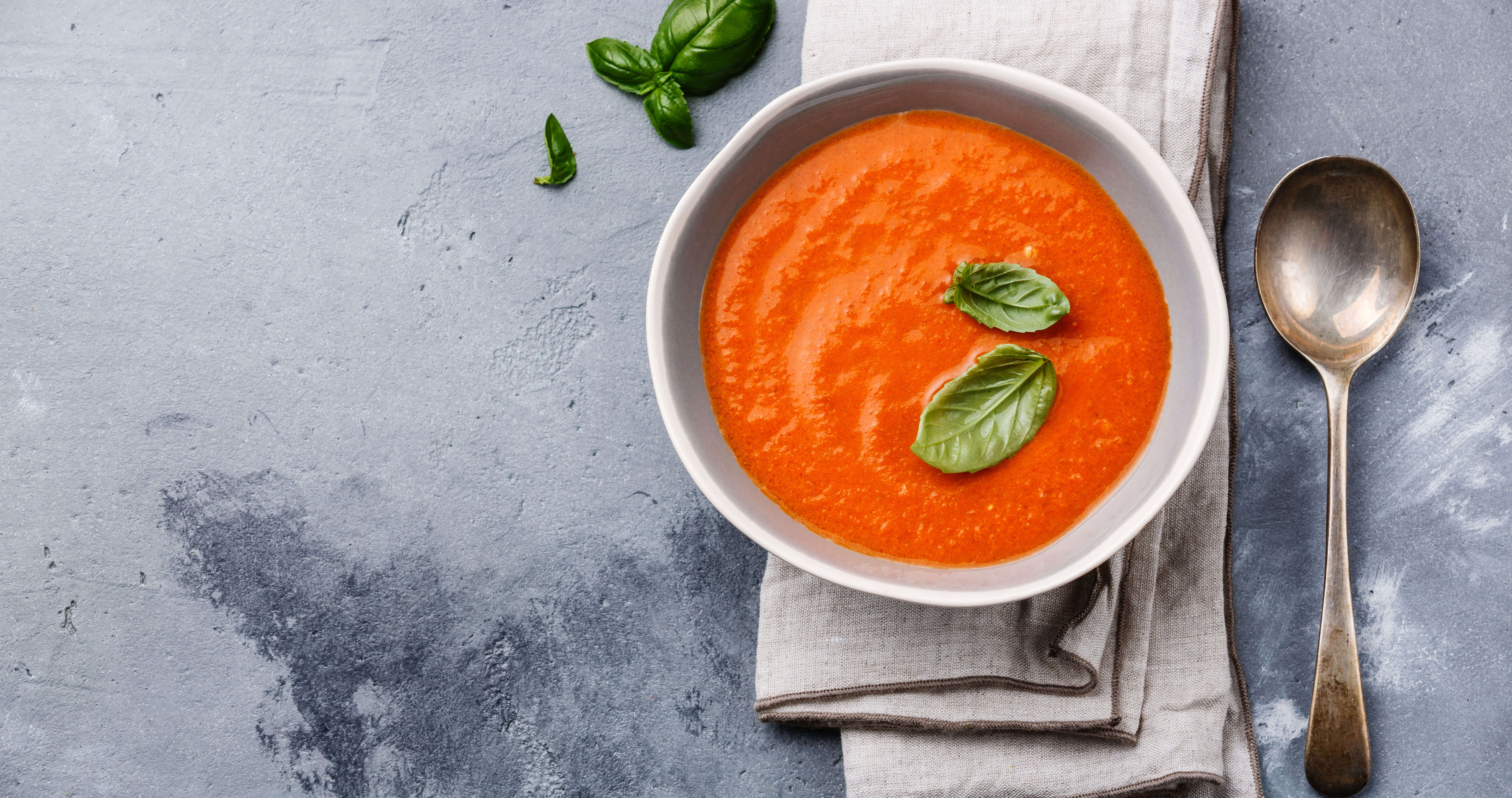 This tomato soup recipe combines red peppers, tomatoes, and basil with other ingredients to produce the perfect flavor-filled winter warm up.