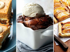Give thanks for pie! Creamy chocolate walnut; sweet potato covered in a buttery, crunchy topping; classic, custardy pumpkin — these favorites are fit for a feast.