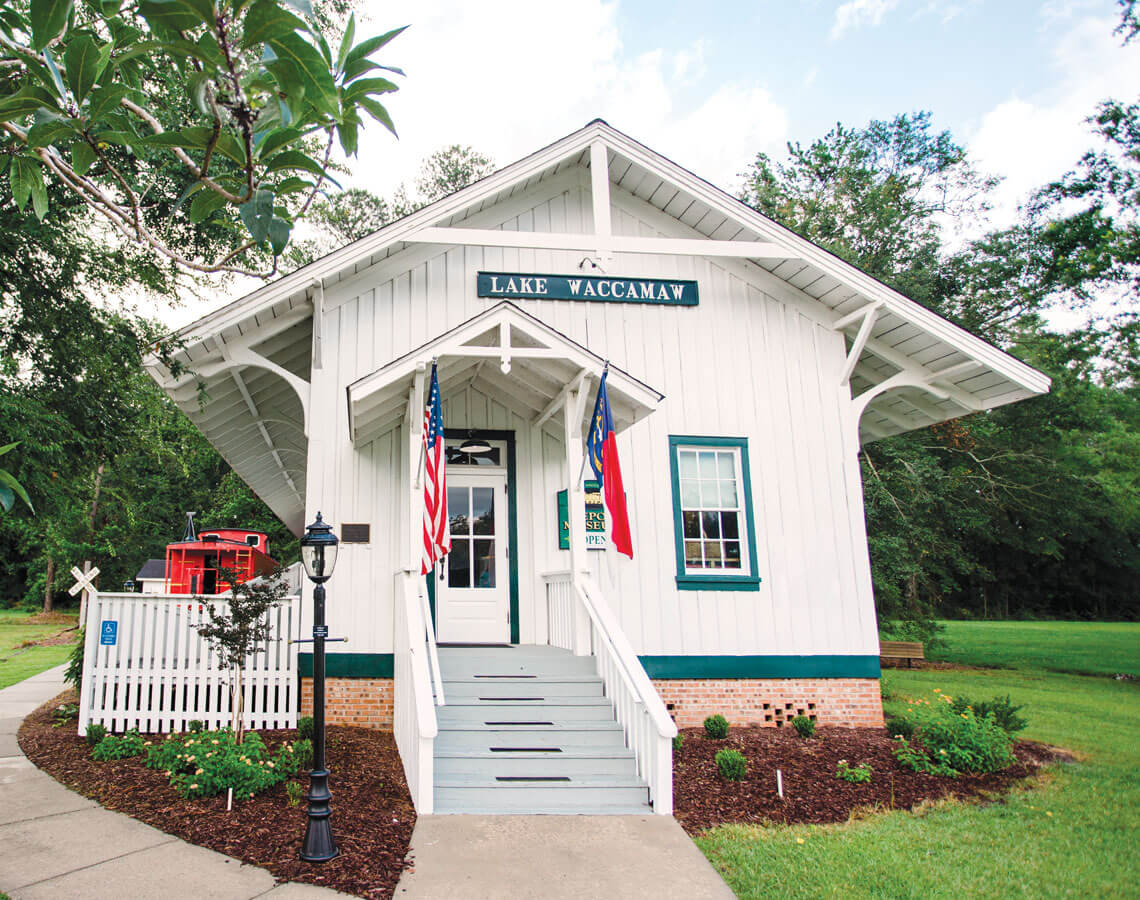 When the town of Lake Waccamaw’s 1904 train depot was abandoned 46 years ago, the local women’s club came to the rescue and purchased the deserted building for $200. Now, sitting near the shore of the town’s namesake lake, the preserved whistle-stop showcases artifacts that date from the Neolithic era to the Civil War to present-day lake life, thanks to a dedicated crew of creative, tireless curators and residents. “We wanted to preserve the history here at the lake so that future generations would not forget that this depot was the beginning of Lake Waccamaw,” says Nancy Sigmon, a board member who also served as a town commissioner and mayor. “We’re real proud of it.”