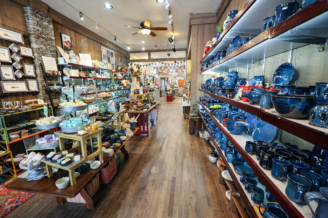 Main Street — with its four stops — is a great place to start your tour. You’ll find The Mountain Thread Company and High Country Candles in the historic Martin House, one of the oldest remaining buildings in town. See artisans at work at The Mountain Thread Company as they create quilts, rope baskets, and fabric arts in the sunny shop and studio. At High Country Candles, intricately carved candles, wax-filled jars with mountain-inspired scents like Blackberry Sage, and colorful pillars fill the shelves.