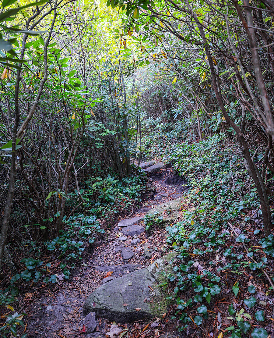 You’ll cross streams, pass through rhododendron tunnels, and wind by large rock formations on your journey. The rushing river accompanies you part of the way, and the sound of water flowing in the rocky creek bed signals your arrival at a series of cascades over large boulders. With care, you can climb onto these boulders to soak in the sun.