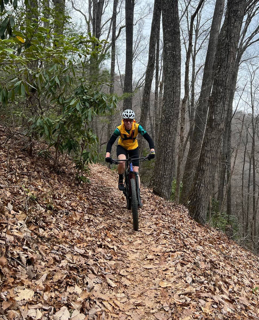 Race down a trail during a mountain-biking adventure. Photography courtesy of Blowing Rock TDA