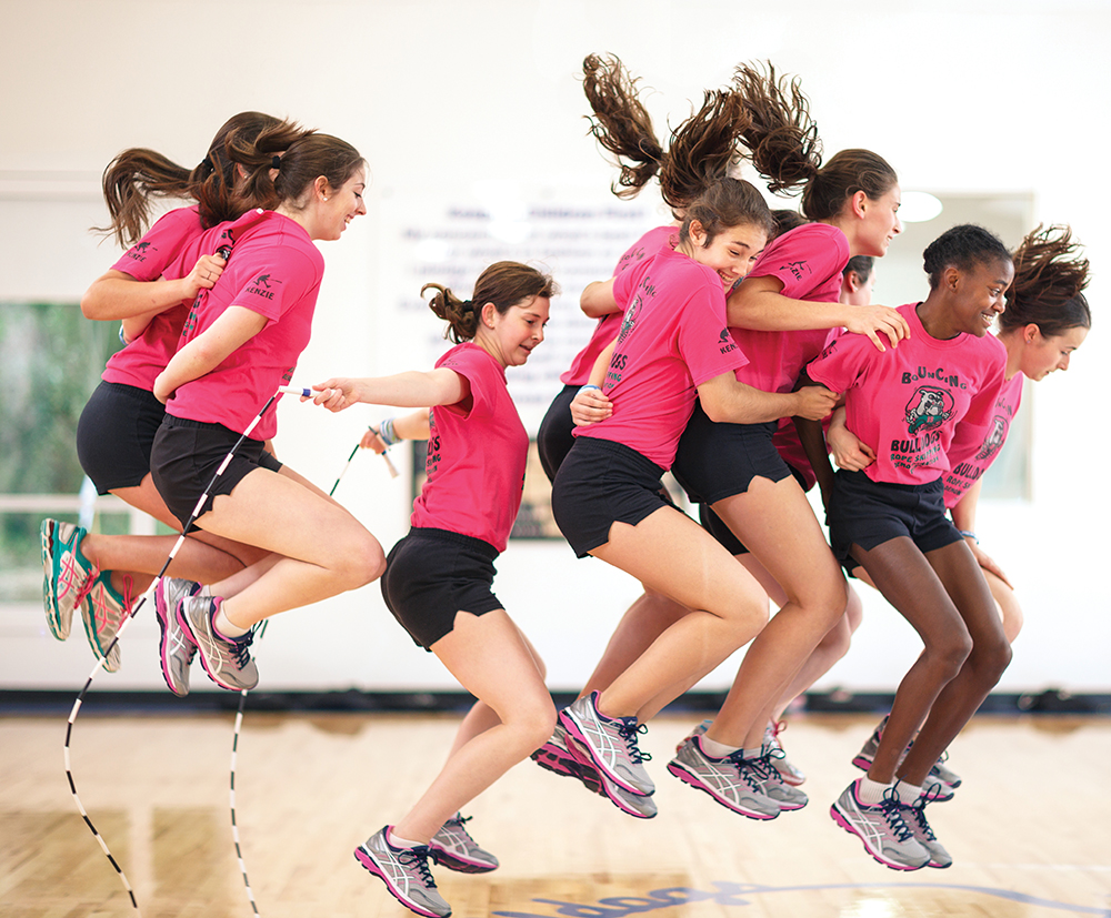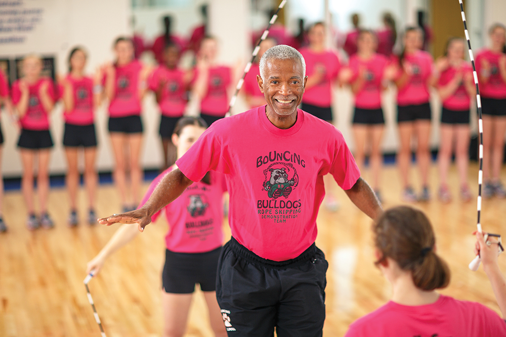Fredrick adopted the Bouncing Bulldogs moniker from Durham’s Hope Valley Elementary School, the home of the Bulldogs. It was there that he taught physical education and first used a jump rope to get kids moving. The team was born in 1986 with 15 Hope Valley third- and fourth-graders.