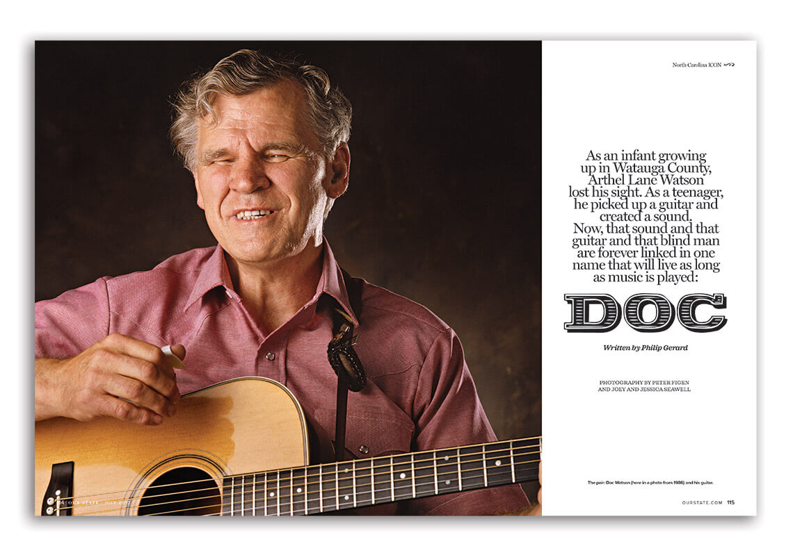 Philip brought his insights as a musician to his profile of Doc Watson, the cover story for our “North Carolina Icons” issue. His memories of hearing Watson’s joyful, deceptively simple music for the first time in college were all the more poignant because the issue came out weeks after Watson died in May 2012.