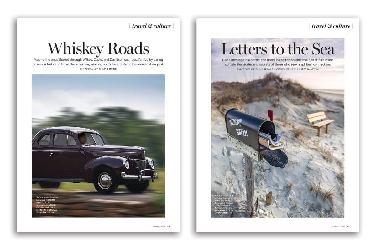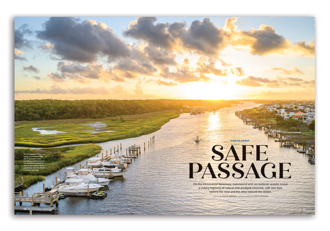 Philip’s love of messing about in boats helped inspire two pieces last summer. In June, he put together a primer on working boats of the Carolina coast. In August, he wrote the narrative for our photo essay about the Intracoastal Waterway — taking to the water in his own boat to get the details just right.