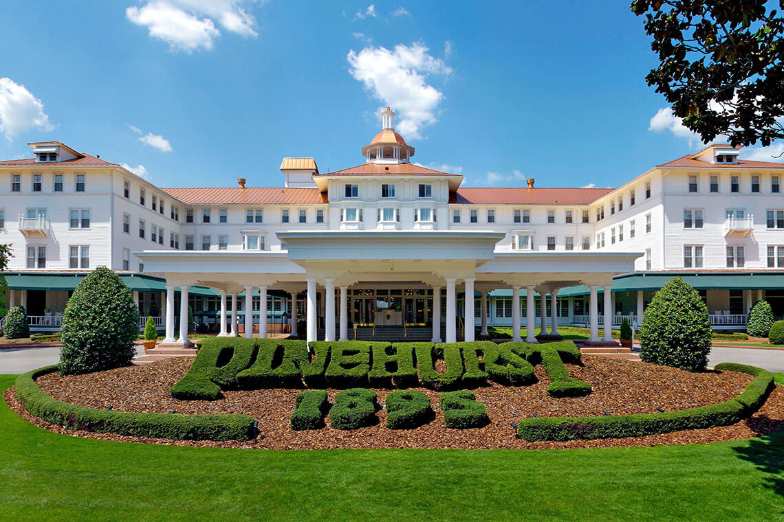 For more than a century, the “Queen of the South” has welcomed guests to Pinehurst. Stroll across the hotel’s spacious verandas and into one of 215 Four-Diamond rooms and suites, which, along with the grand lobby, have been recently renovated. The Carolina Dining Room, home to the best breakfast in golf, continues to tempt the palate of every guest, while the Coffee House in the lobby serves up quick bites and fresh coffee. This cornerstone of Pinehurst also offers a heated pool complex, a putting green on its West Lawn, and three retail outlets.