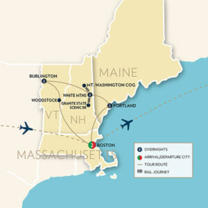 It’s no secret that New England shines in the fall. On this nine-day adventure, we’ll trace scenic routes by rail and road — riding the Mount Washington Cog Railway, strolling the streets of Woodstock and North Conway, and cruising the rocky coastline of Maine’s Casco Bay. Along the way, we’ll enjoy cider mills, covered bridges, lobsters, lighthouses, and the stories of the region.