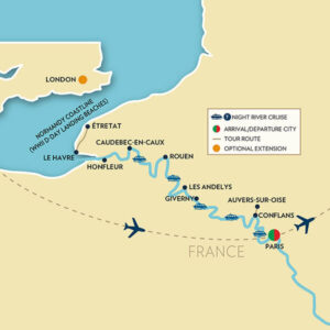 In Giverny and Auvers-sur-Oise, walk in the footsteps of Monet and Van Gogh, who were among the many Impressionist artists inspired by the charm of this area’s storybook villages and rolling landscapes. Then, stand on the shores of Normandy, where the bravery, sacrifice, and resilience of Allied troops shaped history on D-Day — one of World War II’s defining moments.
