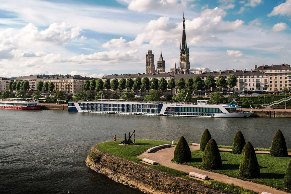 After arriving in Rouen, enjoy a walking tour, including a visit to the magnificent cathedral that inspired Claude Monet and the modern Church of Joan of Arc, with its magnificent 16th-century stained-glass windows. Rouen is known as Museum Town for its many museums, was important in the Roman era and Middle Ages, and features a cobblestoned pedestrian center with medieval half-timbered houses. The afternoon is open to explore the town on your own before the ship departs in late afternoon.