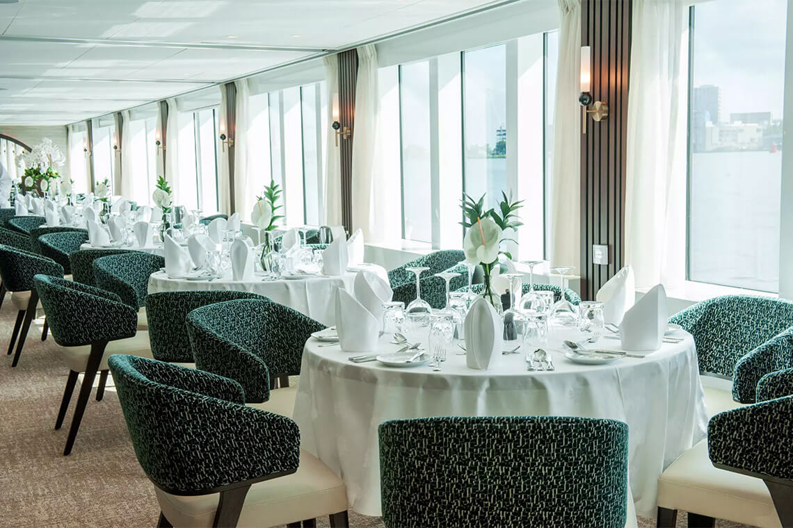 The innovative, custom-designed 158-passenger Amadeus Nova, launched in 2024, offers all the amenities of a floating five-star hotel, with 67 large staterooms and 12 suites. This premium cruise ship features modern furnishings and a luxurious design that blends masterfully with the architecture of the ship — a hallmark of the Amadeus fleet. The expansive restaurant and the Panorama Bar offer divine views of the passing riverscapes.