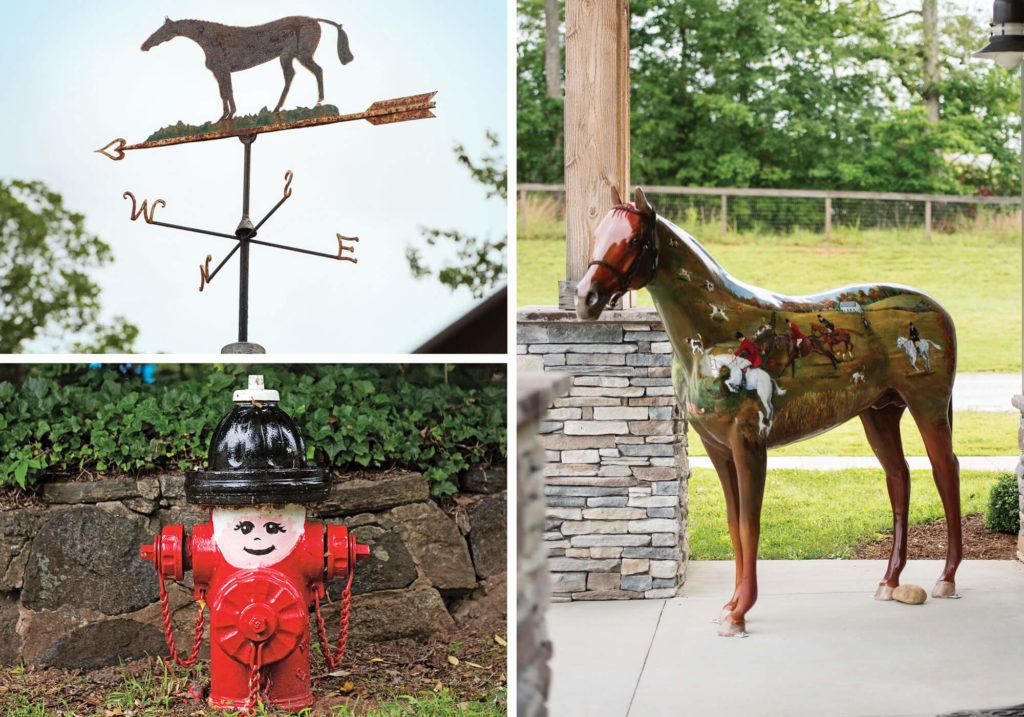 In Tryon, the horse country motif is everywhere — atop a weather vane, in life-size replicas, and even on fire hydrants painted as huntsmen. photograph by Jack Sorokin