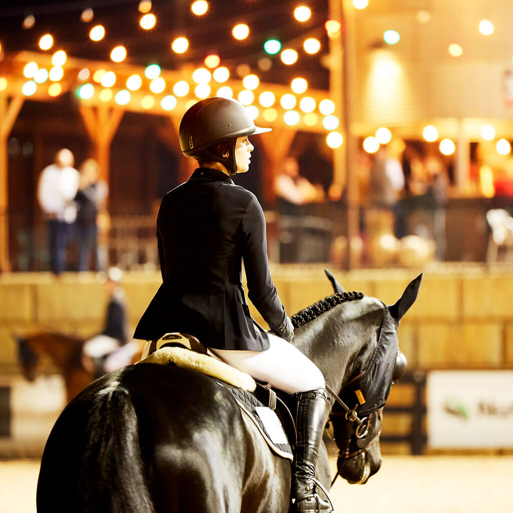 A young rider waits under the lights at the Tryon International Equestrian Center. photograph by Stacey Van Berkel