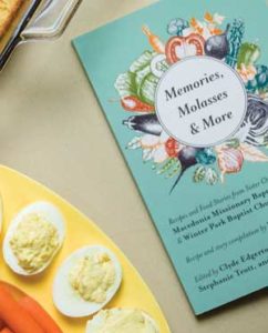 Memories, Molasses & More, compiled by Peggy Price and edited by Edgerton, Brunson, Stephanie Trott, and Diana Clark, is a slim paperback cookbook published with help from UNC Wilmington. It’s the result of a long collaboration that started about 10 years ago with Winter Park’s former pastor Eric Porterfield and his predecessor, and Macedonia’s pastor, the Rev. Dr. Terry L. Henry. At first, the pastors swapped pulpits every other year or so. Before long, members from both churches were following suit, visiting each other’s worship services and making friends outside the doors of their own respective churches. The Rev. Paul Burgess, Winter Park’s new pastor, and Reverend Henry plan to continue the tradition.