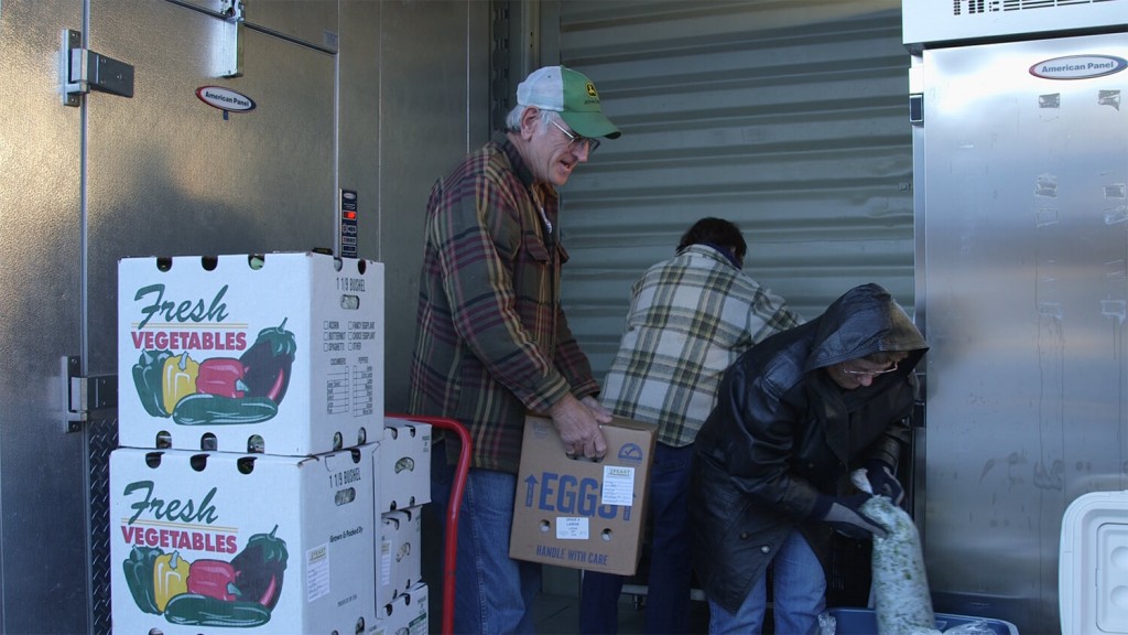 “It sounds nice, but it’s a 7-days-a-week job,” says Jim Lofts, who’s dropping off several boxes of produce spared right before the blustery turn in the weather. He owns a 64-acre farm in nearby Chinquapin with his wife, Rosemary.