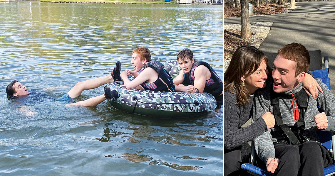 Sometimes, an activity is easier than we think. At a family reunion near Hyco Lake, we loaded Ben into a large inner tube with a life jacket. With family watching from the dock, his brothers held on to the tube while they drifted for more than an hour. Ben’s squeals could be heard across the lake as his brothers let him grab their feet while they floated beside him. I couldn’t stop smiling: My three sons were playing in the lake together.