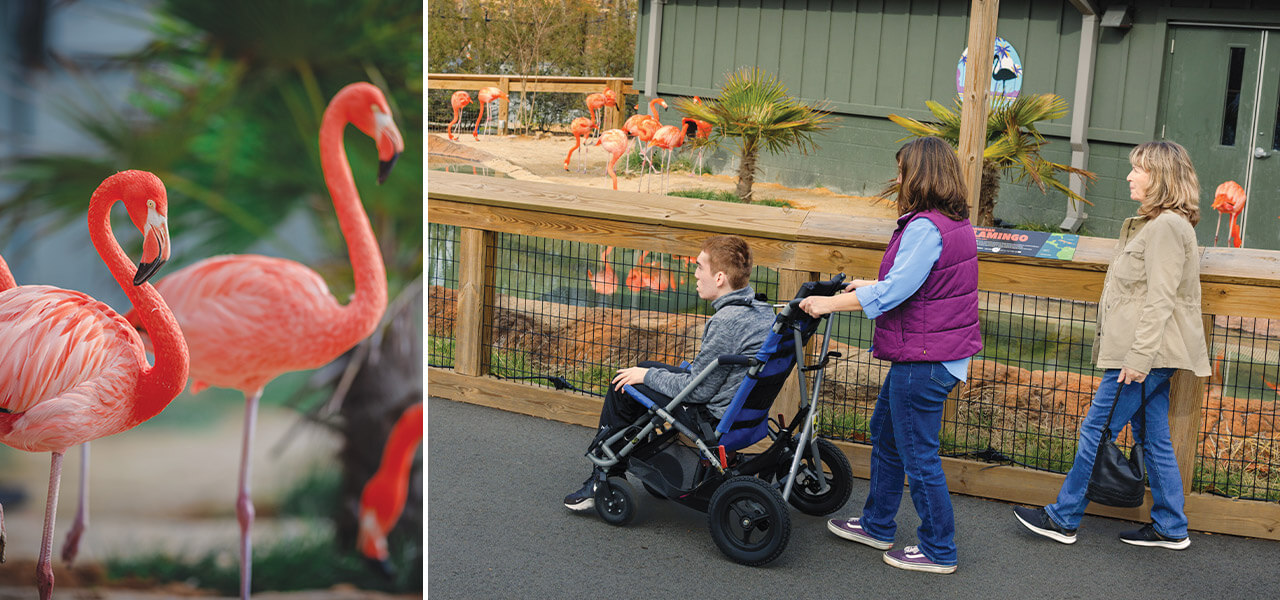 At the Greensboro Science Center, Ben directs our route from his manual wheelchair, using his body and arms. When we pass by the doors to the zoo, he twists his torso to show us that he wants to go there next. We move quickly — he’s anxious to be outdoors. He pushes the button on the wall to open the automatic door leading to the animals.