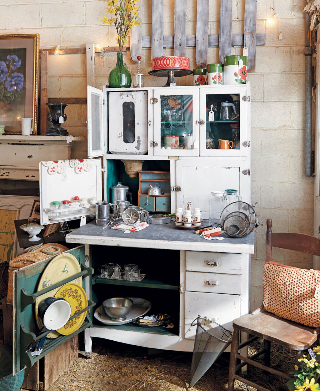 Flea market finds abound: Many of the Chartreuse Barn vendors specialize in eye-catching vintage housewares. photograph by Stacey Van Berkel