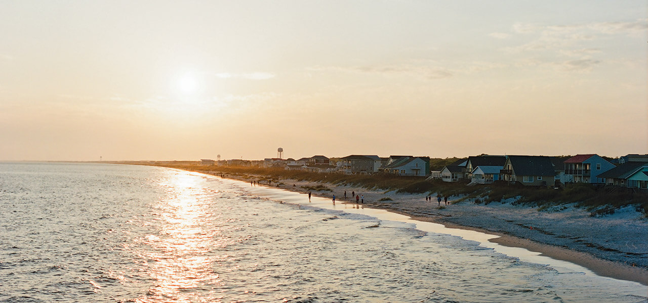 Hurricane Matthew all but destroyed the Oak Island Pier in 2016, but the community rallied to rebuild it, and with that, an idyllic new backdrop for a day at the beach. photograph by BRENDA TORREY