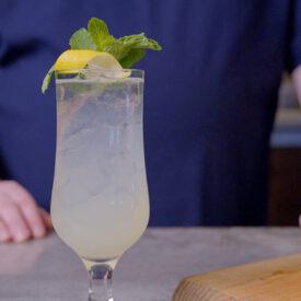 Inspired by a Tom Collins cocktail, this non-alcoholic riff pairs bright lemon with sweet elderflower for an effervescent springtime refreshment.
