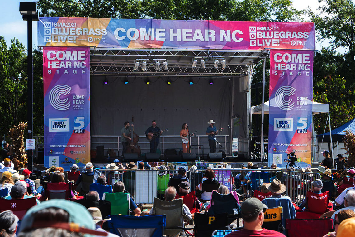 See North Carolina bands like the Chatham Rabbits at the International Bluegrass Music Association World of Bluegrass. Photography courtesy of THE NORTH CAROLINA DEPARTMENT OF NATURAL AND CULTURAL RESOURCES