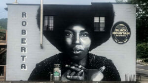 The Roberta Flack mural in Black Mountain pays tribute to the singer in her hometown. Photography courtesy of THE NORTH CAROLINA DEPARTMENT OF NATURAL AND CULTURAL RESOURCES