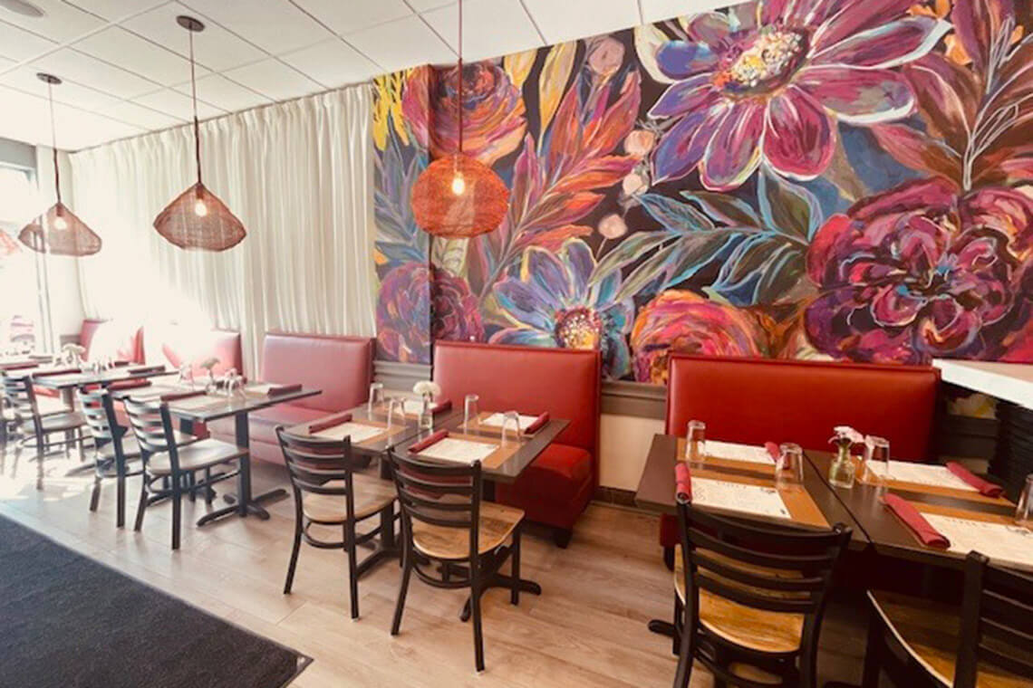 At Voyce Bistro, the striking mural and warm tones invite guests to settle in and stay awhile. Photography courtesy of Voyce Bistro