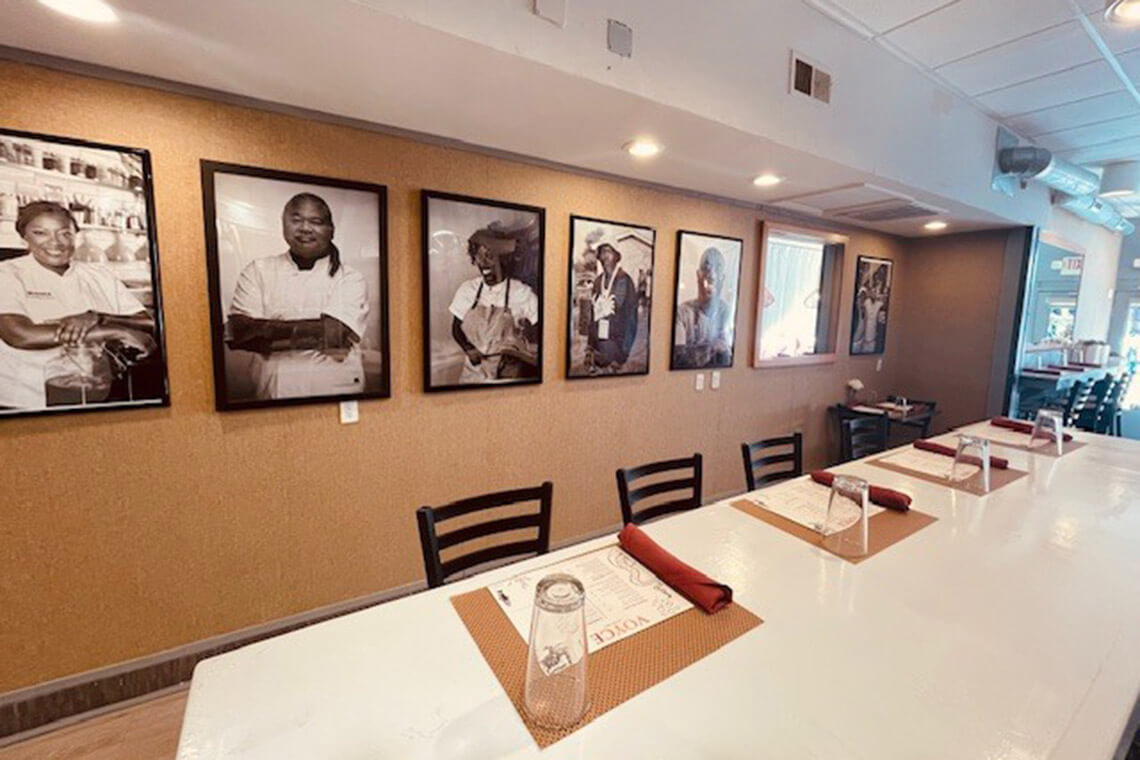 Portraits of passionate chefs create a meaningful backdrop and reflect their connection with Rhodes. Photography courtesy of Voyce Bistro