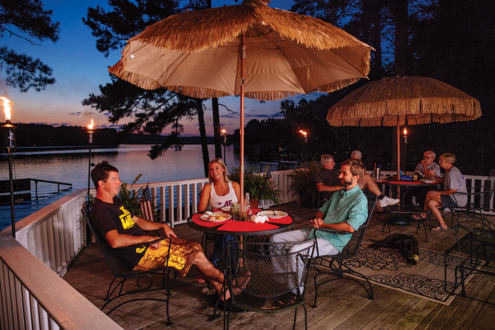 A long lake day usually ends on Lewis and Marie’s back deck, with a sunset and plenty of company. photograph by Andrew Kornylak