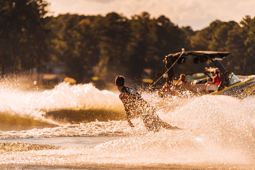 When Lewis first started skiing, most of the lake was surrounded by woods — thick forests of pine, dogwood, maple, and poplar. Then, the houses came. Slowly but surely. Bigger and bigger. The new interest was good for Lewis’s business, since the new homes needed boathouses, docks, and lifts. The farmer who’d dismissed Lake Gaston all those years ago? A few years after that conversation, his wife started selling real estate.