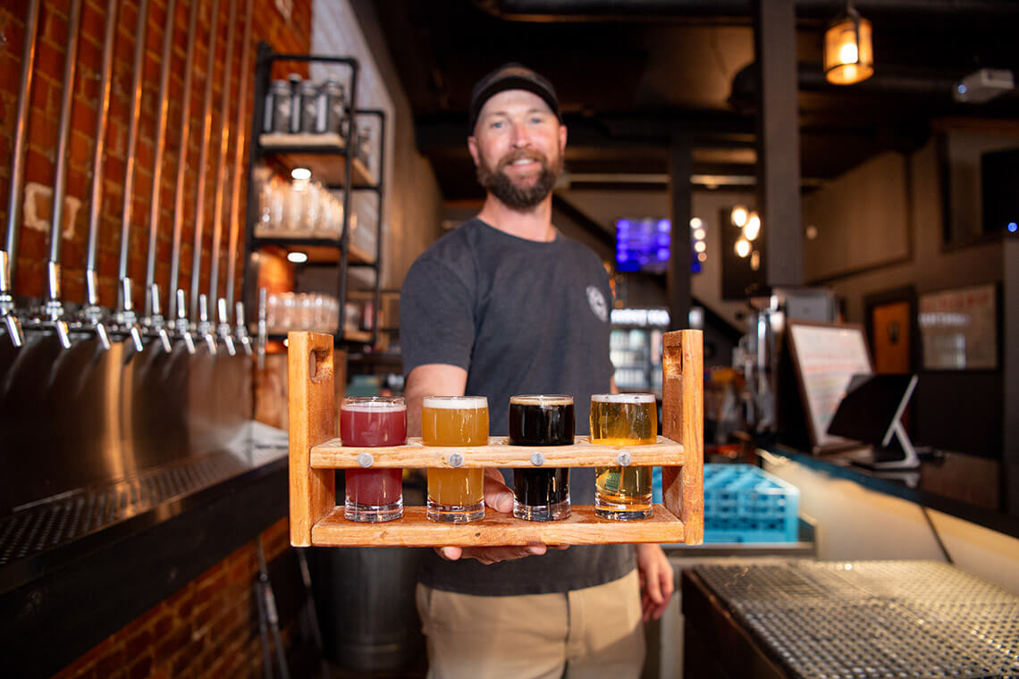 Sample a flight of Ghost Harbor’s house-brewed beers and pick up a four-pack of your favorite to take home. photograph by Katie Myrick Photography
