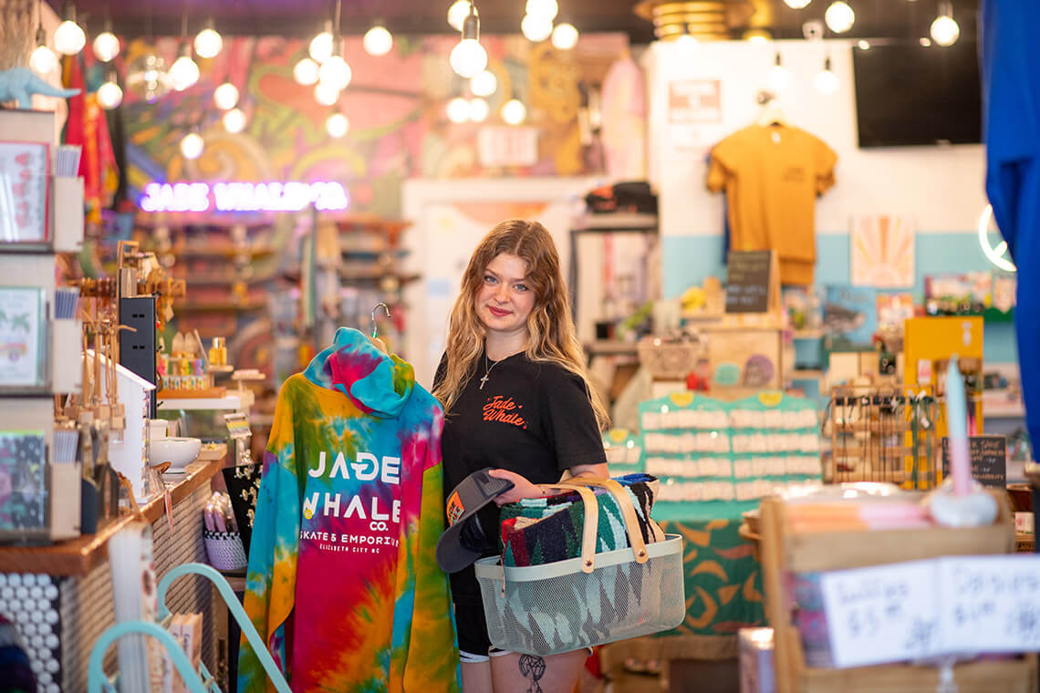 You can spend a few minutes or a few hours delving into the downtown boutiques and shops. Bijoux Vibes is an aesthetically pleasing, airy space offering women’s apparel and accessories with friendly staff to help with styling. Around the corner on Main Street, Jade Whale is a hip surf-skate store known for its clothing brand that contributes to whale and ocean conservation efforts. Shut Up and Listen, on the other side of the block, is a classic vinyl and CD store with good tunes blasting from the front door, expert advice on selections, and an atmosphere that invites lingering.